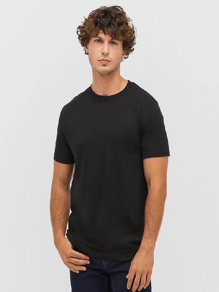 Ribbed collar. Jersey knit. Modern fit. Taped neck