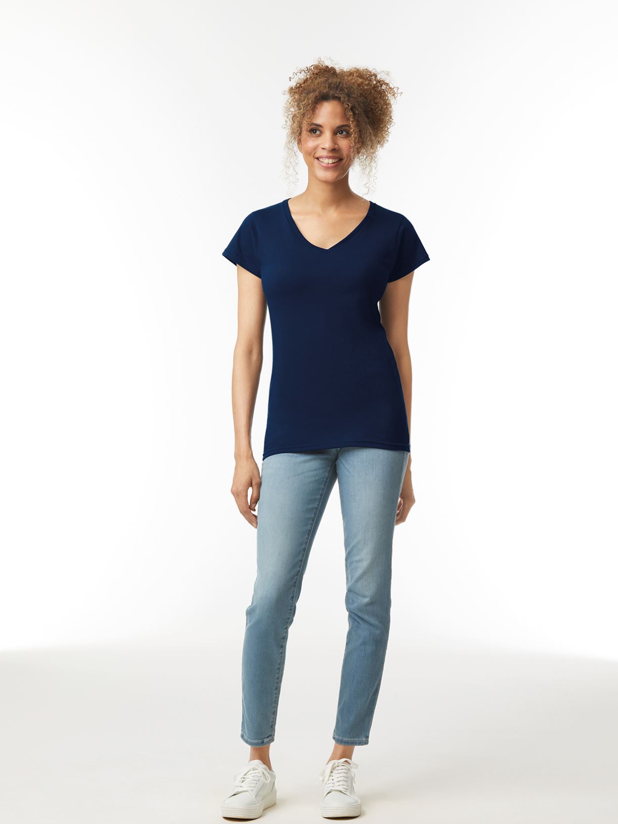 100% Ringspun Cotton. Ladies Fitted Cut. Fabric: 150 grams per square metre. 1.3cm mitred V-neck collar. High stitch density for smoother printing surface. TearAway label for easy rebranding. Also available in men’s sizes code 64V00